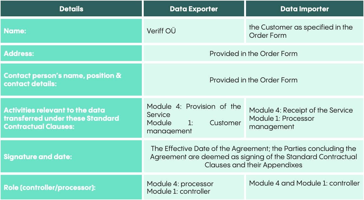 (a) Veriff is the “data exporter” and the Customer is the “data importer”,