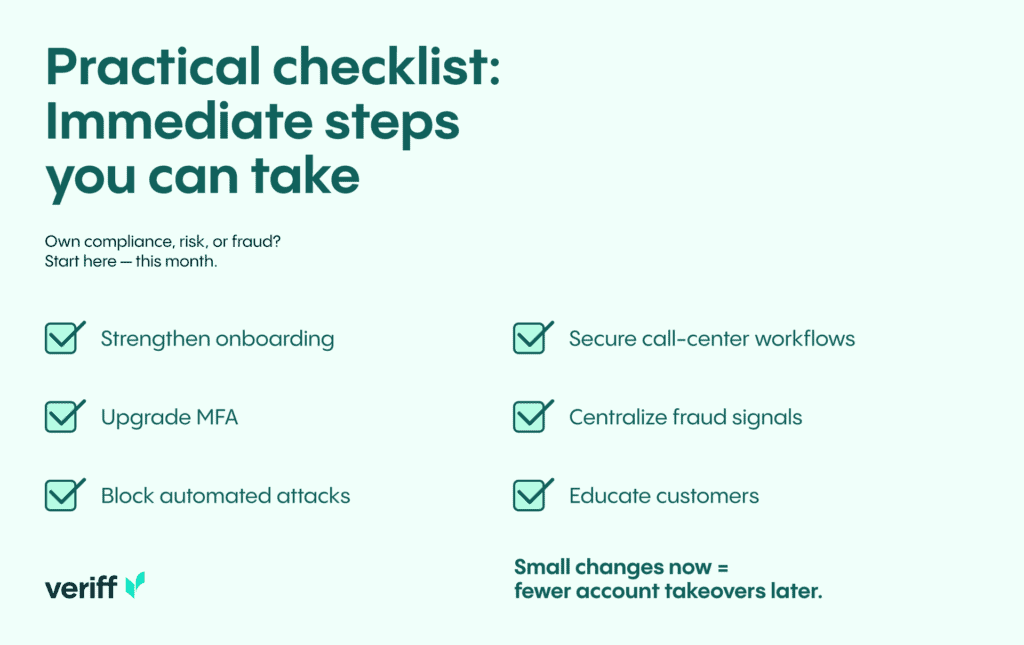 Si usted es responsable de cumplimiento, riesgo o fraude, aquí tiene una lista de verificación pragmática que puede implementar este mes: