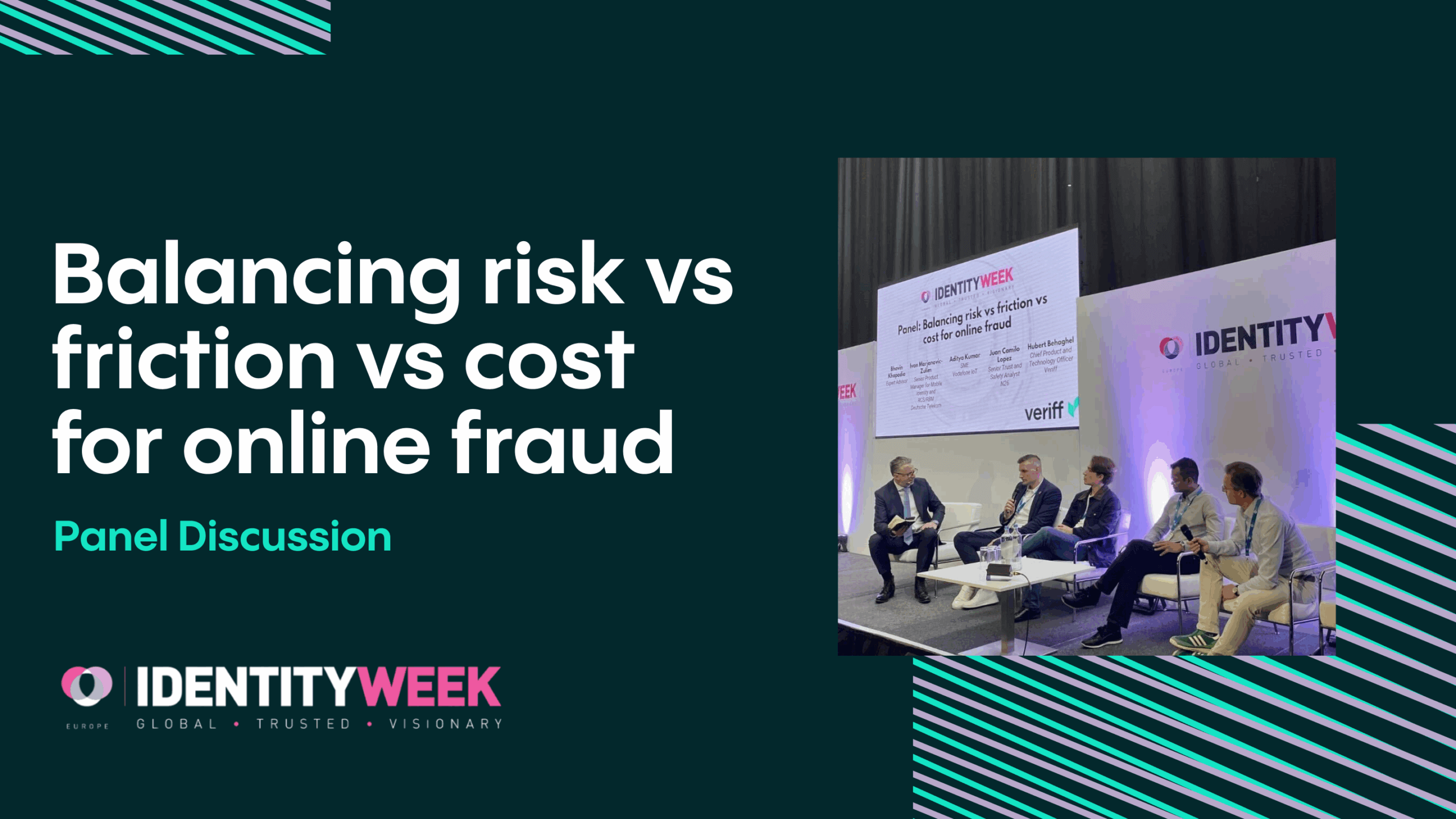 Moderado por Matthew Finn, CEO de augmentiq, el panel incluyó a Aditya Kumar (Experto en la materia: IoT y IAM, Vodafone IoT), Juan Camilo López (Analista Senior de Datos de Fraude, N26), Ivan Marjanovic-Zulim (Gerente de Producto Senior para Identidad Móvil y RCS/RBM, Deutsche Telekom AG) y Hubert Behaghel (Director de Producto y Tecnología, Veriff).