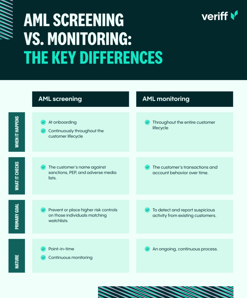 AML screening vs. monitoring: The key differences