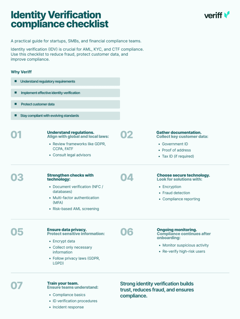 Download the Identity Verification compliance checklist to streamline your IDV workflows and strengthen your compliance posture.