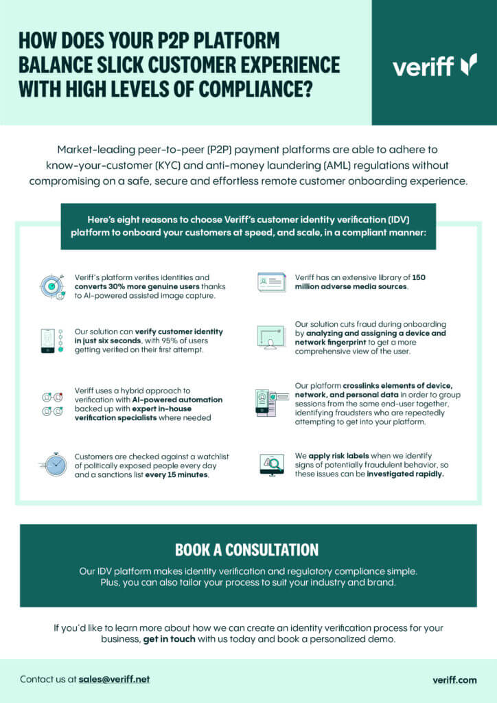 Discover how Veriff is helping P2P payment platforms to combine a seamless user experience with achieving compliance.