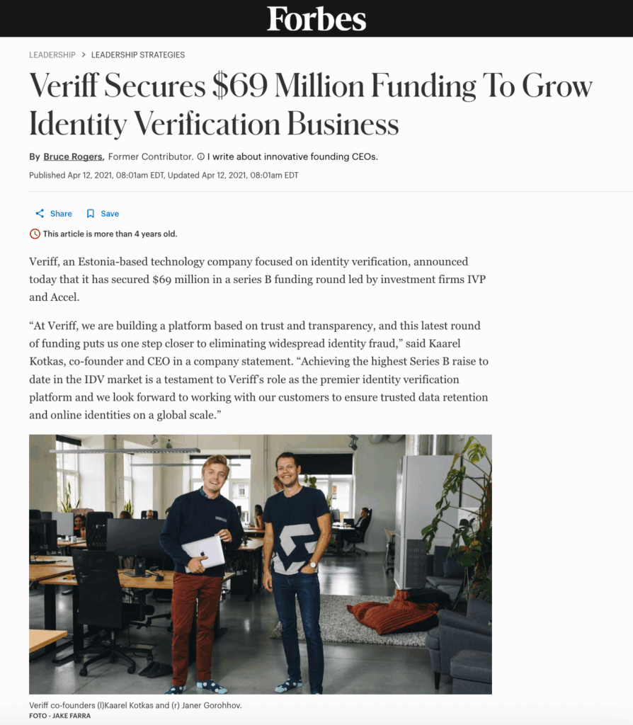 In Estonia, the question of “who is behind the device” has been effectively answered for decades. Digital identity is part of daily life: citizens sign, bank, and vote online. That context made Veriff’s founding challenge feel obvious and urgent to early Estonian backers: the rest of the world needed a reliable way to know who’s on the other end.