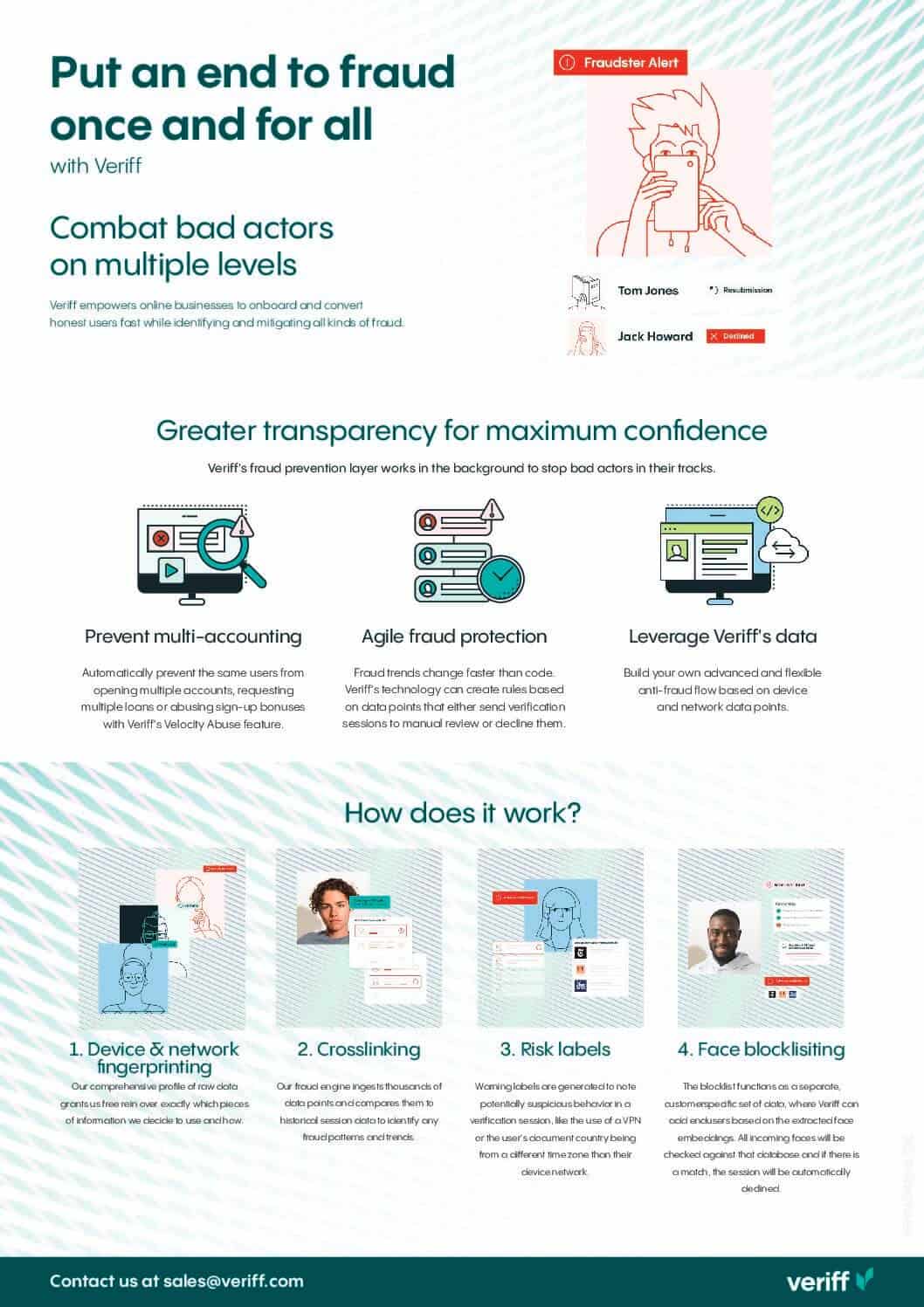 Aprenda como a Veriff capacita empresas online a integrar e converter usuários genuínos rapidamente, enquanto identifica e mitiga todos os tipos de fraudes.