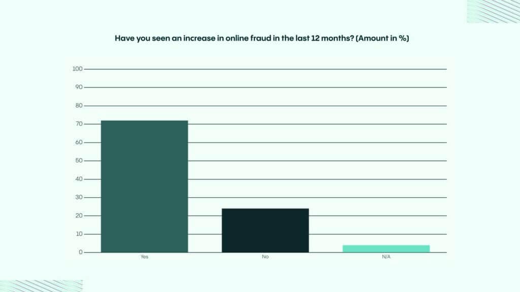 Quase 72% dos entrevistados relataram um aumento ano após ano em fraudes, com fintechs e criptomoedas vendo o maior aumento. Os fraudadores estão explorando vulnerabilidades digitais à medida que mais serviços se mudam para o online.