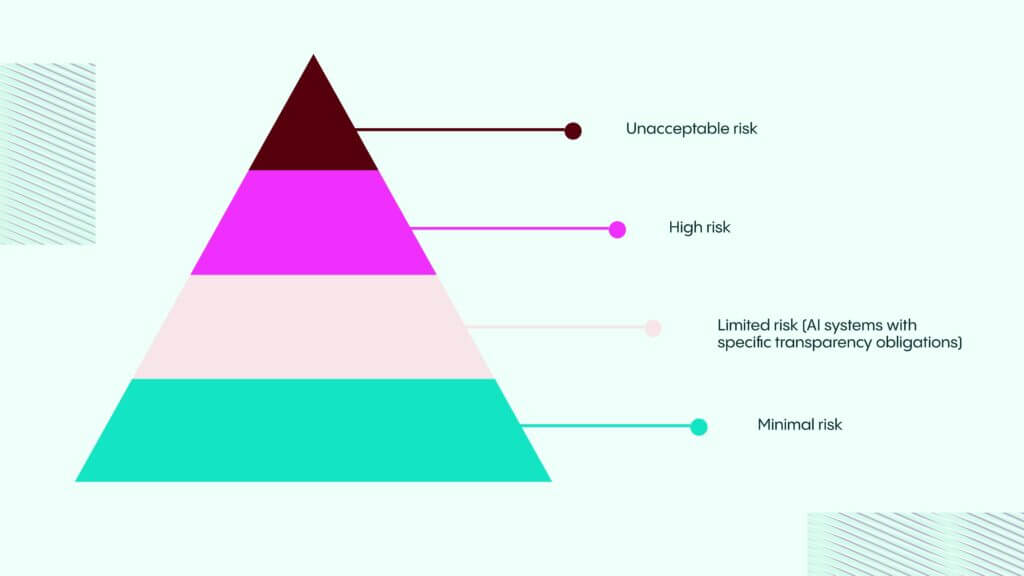 Um dos aspectos mais críticos da Lei de IA da UE é sua abordagem baseada em riscos, que classifica os sistemas de IA em quatro categorias: