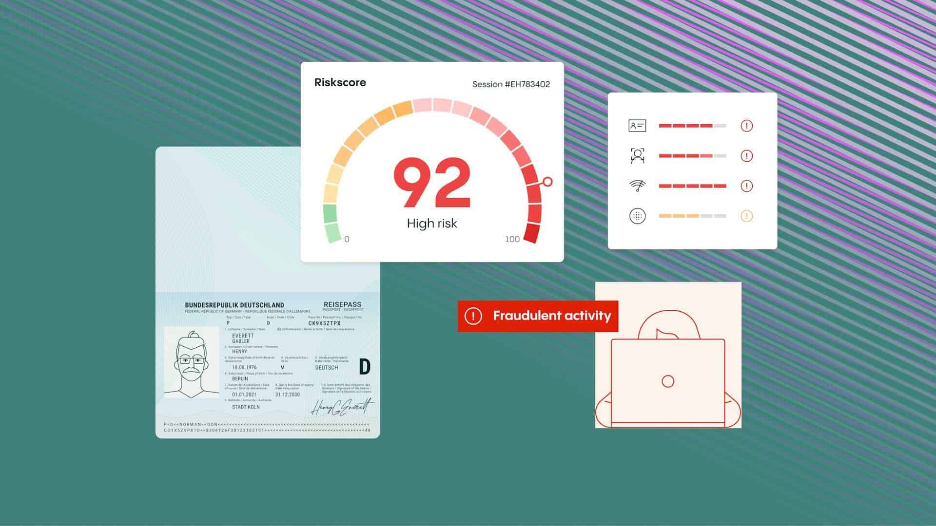 O RiskScore da Veriff é um grande passo rumo ao combate à fraude online. Essencialmente, a Veriff analisa o documento do usuário, biometria facial, dispositivo e rede, junto com padrões anteriores de fraudes, para oferecer uma avaliação e proteção contra fraudes de classe mundial.